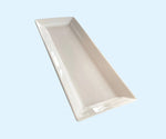 Choose our contemporary cracker tray to accompany your meats and cheeses. We specifically designed this piece to compliment our slate sizes from 6" x 10" to 12" x 24". Made from the finest white porcelain, it is still dishwasher safe. Size is approximately 10" x 3.5".