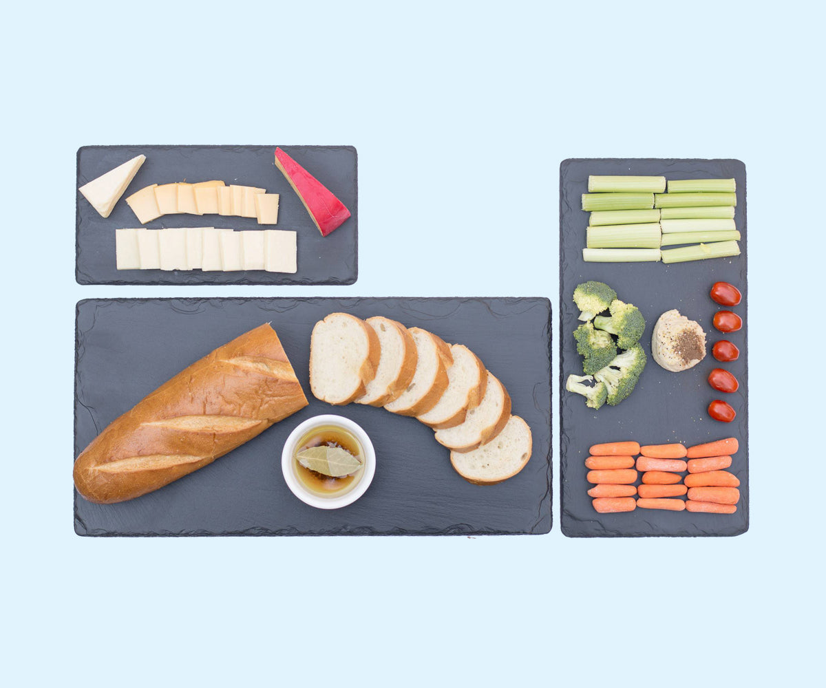 • Your Slateplate can be chilled in the freezer or warmed in a warming oven (up to 200F) before serving.