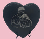 These hearts are beautiful bedside as a place to put your wineglass or morning coffee cup. Or in the bath, holding special lotions, soaps or potions. Or displayed or hung. A Slateplate exclusive that will mean the world to your favorite person. Each heart is about 9" in diameter.