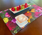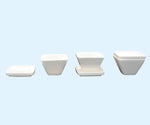 Choose our NEW contemporary porcelain ramekin for serving dips. Our unique design comes with a versatile lid/tray - so you can transport this without spilling and catch drips in use. I love this piece for outdoor entertaining - a beautiful cover for the dip that keeps annoying flying things out until you're ready. Made from the finest, beautiful white porcelain, it is still dishwasher safe. (We don't hand wash at Slateplate!) Size is approximately 3" x 3"